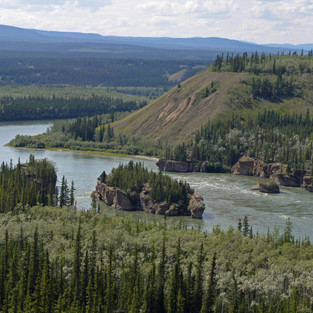 Am frühen Abend schwingen wir uns dann wieder hinters Steuer und wollen zum Miles Canyon hinaus, südlich von Whitehorse. Unterwegs sehen wir einen Fuchs am Straßenrand der uns sehr interessiert beäugt und dann wieder im Gebüsch verschwindet. Am Miles Canyon ist so spät nicht mehr viel los und wir wandern ein Stück den schmalen Trail entlang des Yukon-River. Der Canyon ist tief und eng, eigentlich unvorstellbar dass diese großen Schiffe wie die SS Klondike hier durchgepasst haben. Das muss schon Maßarbeit gewesen sein und war wahrscheinlich das maximale Maß der Breite aller Schiffe die auf dem Yukon unterwegs waren.